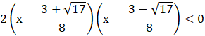 W pierwszej kolejności szukamy miejsc zerowych. Następnie rysujemy parabolę z ramionami skierowanymi w górę, bo współczynnik przy najwyższej potędze jest dodatni. Punkty przecięcia paraboli z osią to miejsca zerowe