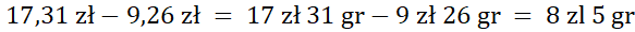 8 zł 5 gr + 9 zł 26 gr = 17 zł 31 gr