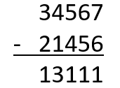 W tym zadaniu musisz wykonać odejmowanie pisemne dwa razy: 34 567 – 21 456 – 2345.