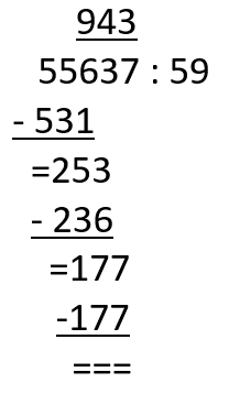 W tym zadaniu musisz wykonać dzielenie 55 367 ∶ 59 sposobem pisemnym. Sprawdź swój wynik.