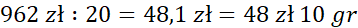 c) 962 zł : 20 = 48 zł 10 gr