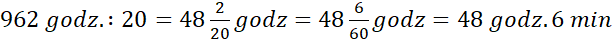 b) 962 godz. : 20 = 48 godz. 6 min