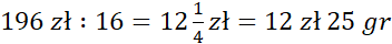 f) 196 zł : 16 = 12 zł 25 gr