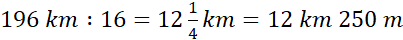 d) 196 km : 16 = 12 km 250 m