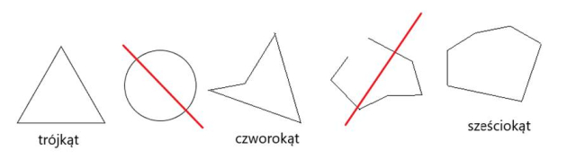 Skreśl figury, które nie są wielokątami i podpisz figury.