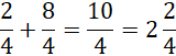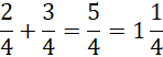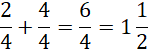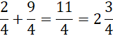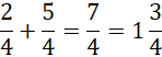 Dodaj do siebie liczniki, mianownik zostaw w niezmienionej formie. Następnie zamień z ułamka niewłaściwego na liczbę mieszaną.
