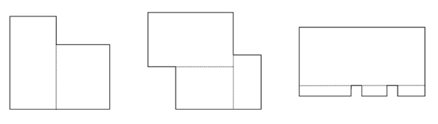 W tym zadaniu narysuj linie dzielące podane figury na możliwie najmniejszą ilość prostokątów.
