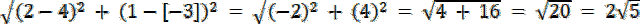 |BC|2 + |AC|2 = |AB|2⇒ 80 + 20 = 100–trójkąt ABC jest prostokątny