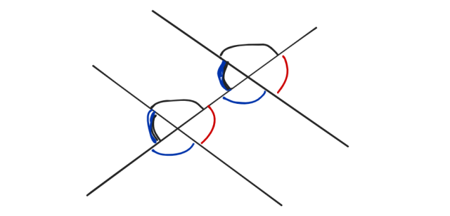 Twoim zadaniem jest zaznaczanie na rysunku kolorami pary kątów odpowiadających.