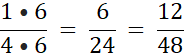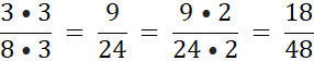 ⅜, ⅙ i ¼ musisz sprowadzić do wspólnego mianownika. Wykorzystaj do tego metodę wspólnych wielokrotności. W tym przypadku widać, że wspólną wielokrotnością będzie 24. Teraz mianownik i licznik należy pomnożyć przez taką liczbę, aby iloraz w mianowniku dawał 24.