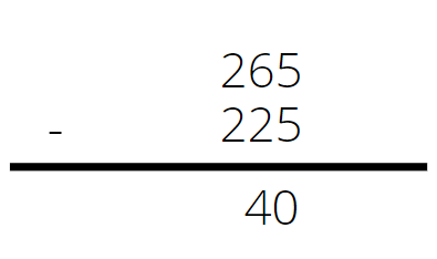 Przyjmiemy uśrednione wartości dla długości oszczepu: 225 cm i 265 cm. Aby obliczyć ich różnice długości musisz je odjąć: