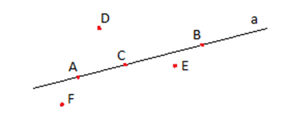 Jeżeli jakiś punkt znajduje się na prostej, to mówimy, że punkt ten należy do tej prostej albo że prosta przechodzi przez ten punkt.