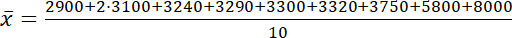 W tym zadaniu, określ ilu pracowników tej firmy ma wynagrodzenie wyższe od wynagrodzenia średniego, wiedząc, że w pewnej firmie jest zatrudnionych 10 osób, a ich miesięczne wynagrodzenia wynoszą: 2900 zł, 3100 zł, 3100 zł, 3240 zł, 3290 zł, 3300 zł, 3320 zł, 3750 zł, 5800 zł, 8000 zł.