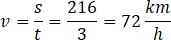 Oblicz prędkość gołębia pocztowego, który wyleciał o 13.25, a na miejsce doleciał o 16.25, pokonując w tym czasie 216 km.