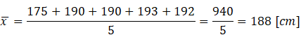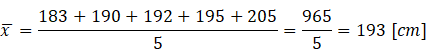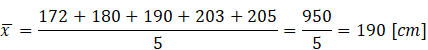 jest średnią arytmetyczną danych (wzrostów zawodników)