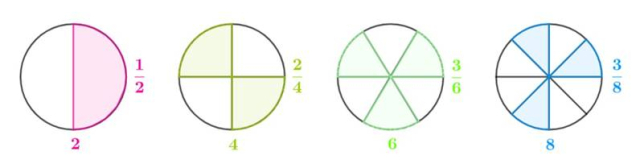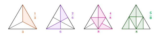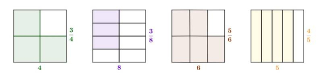 Część zamalowana to stosunek części zamalowanych do wszystkich, na jakie została podzielona figura.