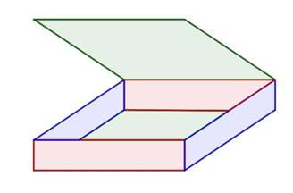 Uzupełnij zdania na podstawie rysunku otwartego i zamkniętego pudełka, a następnie w otwartym zaznacz jednakowym kolorem ściany, które po zamknięciu są do siebie równoległe.