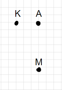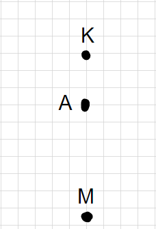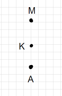 Najmniejsza możliwa odległość punktu M od punktu K wynosi 1,7 cm. Kiedy znajdą się po jednej stronie względem punktu A.