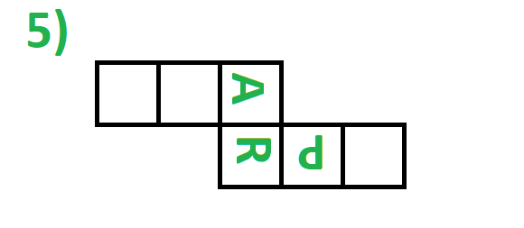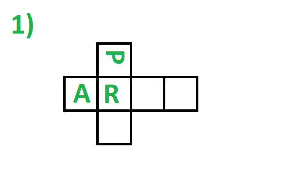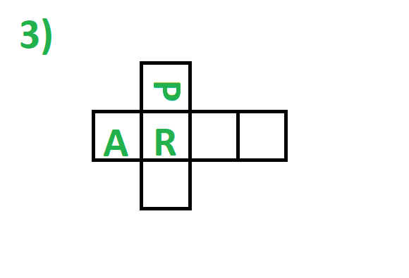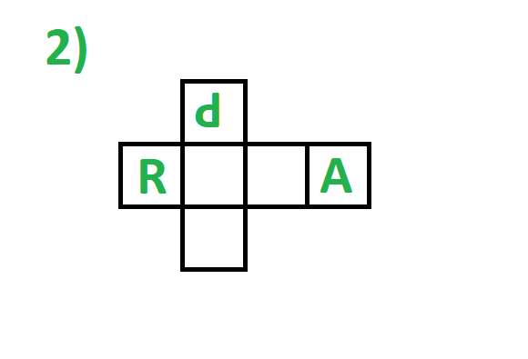 W tym zadaniu musisz uzupełnić brakujące litery P, R i A na siatkach kostki zgodnie z ich ułożeniem względem siebie.