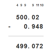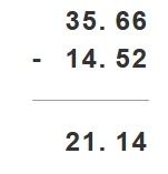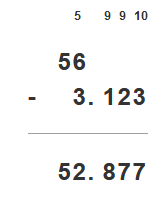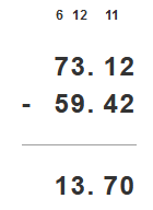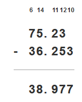 Zapisz liczby tak, by przecinek był pod przecinkiem i odejmuj liczbę dolną od górnej.