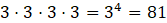 Aby obliczyć, ile można ułożyć czteroliterowych napisów, można sobie wyobrazić, że każda litera ma swoje miejsce, i w ten sposób zapisujesz, ile różnych liter może być na tym miejscu, w tym wypadku 3, bo tyle liter jest w danym zbiorze. Trzy litery mogą być na pierwszy miejscu napisu, drugim, trzecim i czwartym, stąd otrzymujesz