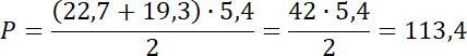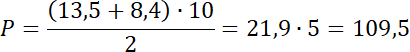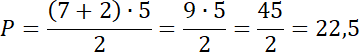 W tym zadaniu musisz zapisać wzór na pole trapezu i obliczyć je, wstawiając podane w tabeli długości.