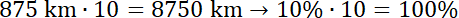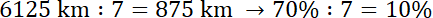 Na początek oblicz np. 10% całej trasy, czyli podziel zarówno odległość, jak i procent jaki stanowi, przez 7. Otrzymasz 10% trasy, więc całość, czyli 100% jest 10 razy dłuższa. Wykonaj mnożenie i zapisz odpowiedź.