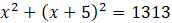 W tym zadaniu znaleźć dwie liczby, z których jedna jest o 5 większa od drugiej, które po podniesieniu do kwadratu każdej z nich, a następnie zsumowaniu obliczonych kwadratów dadzą wynik równy 1313.