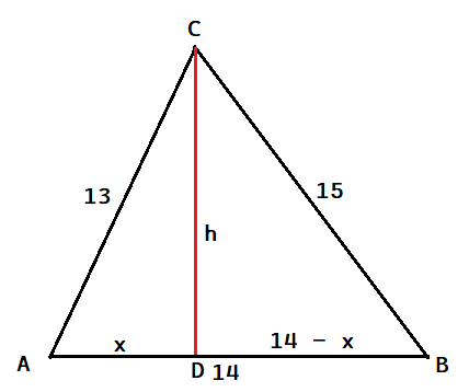 Aby rozwiązać zadanie, ułóż dwa równanie wynikające z twierdzenia Pitagorasa kolejno dla trójkątów CDA i CDB. Zapisz je w postaci układu równań, który następnie rozwiąż, znajdując szukaną długość wysokości trójkąta.