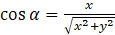 Aby obliczyć wartość cosinusa kąta, na podstawie znajomości współrzędnych punktu P = (x, y) należącego do jego ramienia skorzystaj ze wzoru