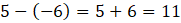 Oblicz różnicę temperatur nad morzem (5°C) i w górach ( – 6°C).