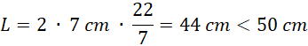 Oblicz czy obwód podanego okręgu jest mniejszy niż 0,5 m.