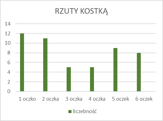 Przedstaw dane doświadczenia losowego w postaci diagramu słupkowego.
