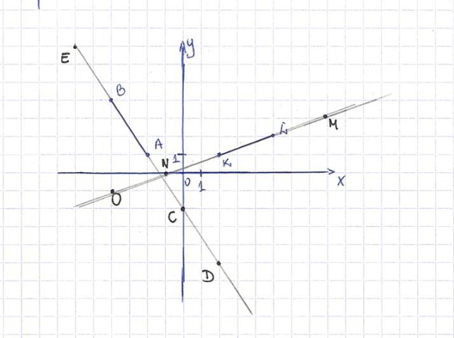 Zaznacz na prostych AB i KL odpowiednio punkty C, D, E oraz M, N, O.