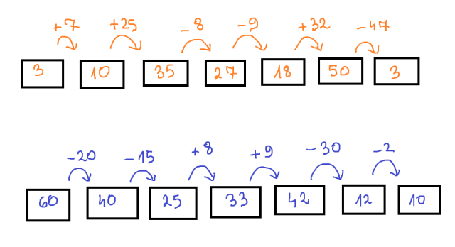 Rozpoczynając od pierwszego z prawej kwadracika z liczbą, wykonuj działania zapisane na strzałkach i wpisuj wynik w sąsiedni kwadracik. Jeżeli ostateczny wynik się zgadza z wynikiem w ostatnim kwadraciku, to jest duża szansa, że zadanie jest wykonane poprawnie.