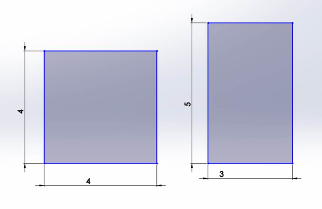 Obwód to suma długości wszystkich boków. Obwód kwadratu: 4 ∙ 4 = 16. Obwód prostokąta: 2 ∙ 5 + 2 ∙ 3 = 16.