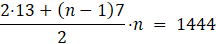 i przyrównujemy wynik do wzoru na sumę n początkowych wyrazów ciągu arytmetycznego i obliczamy wynik.