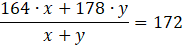 Wyznacz stosunek liczby dziewcząt do liczby chłopców, wiedząc, że średni wzrost dziewczyn wynosi 164 cm, chłopców 178, a w całej klasie 172.
