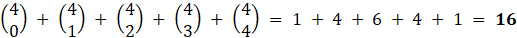 Podzbiór może mieć 0, 1, 2, 3 lub 4 elementy.