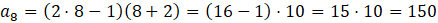 Oblicz ósmy wyraz ciągu an, przez podstawienie za n 8, do wzoru na an: