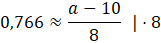 Sinus kąta w trójkącie prostokątnym, to stosunek długości przyprostokątnej leżącej naprzeciw kąta oraz przeciwprostokątnej. W tym wypadku naprzeciw kąta α znajduje się bok o długości a – 10, zaś przeciwprostokątna ma długość 8. Więc możesz napisać: