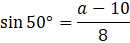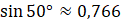 Odczytaj wartość sin 50° z tabelki funkcji trygonometrycznych lub oblicz tę wartość na kalkulatorze naukowym oraz podstaw do wzoru.
