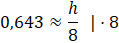 Cosinus kąta w trójkącie prostokątnym, to stosunek długości przyprostokątnej leżącej przy kącie oraz przeciwprostokątnej. W tym wypadku przy kącie α znajduje się wysokość, zaś przeciwprostokątna ma długość 8. Więc możesz napisać: