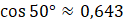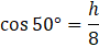 Odczytaj wartość cos 50° z tabelki funkcji trygonometrycznych lub oblicz tę wartość na kalkulatorze naukowym oraz podstaw do wzoru.