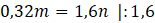 Aby uzyskać zależność n od m wystarczy, że podzielisz obie strony przez 1,6.