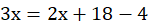 A. Równanie 3x = 2(x+9) - 4 opisuje treść zadania.