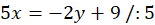 Wskaż prawidłowe dokończenie zdania. Kiedy wyznaczysz x z równania 5x + 2y = 9, otrzymasz