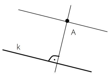 Narysuj prostą prostopadłą do prostej k i prostą równoległą do prostej k. Obie proste poprowadź przez punkt A.