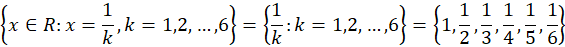 W tym zadaniu musisz zapisać zbiór za pomocą różnych sposobów: odwrotności liczb całkowitych dodatnich mniejszych niż 7.