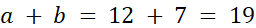 W pierwszym kroku należało ułożyć równania prezentujące zależność między liczbami. Następnie podstawiono jedną ze zmienną (a) wyrażeniem zawierającym drugą zmienną (5+b). Dzięki temu obliczono wartość zmiennej b, następnie zmiennej a oraz ich sumy.